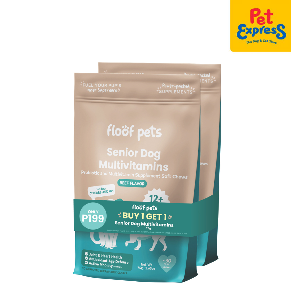 Ensure Your Senior Dog's Golden Years are Healthy and Happy! Give your senior dog the best care with Floof Pets Senior Dog Multivitamins, designed to support their overall health and well-being.