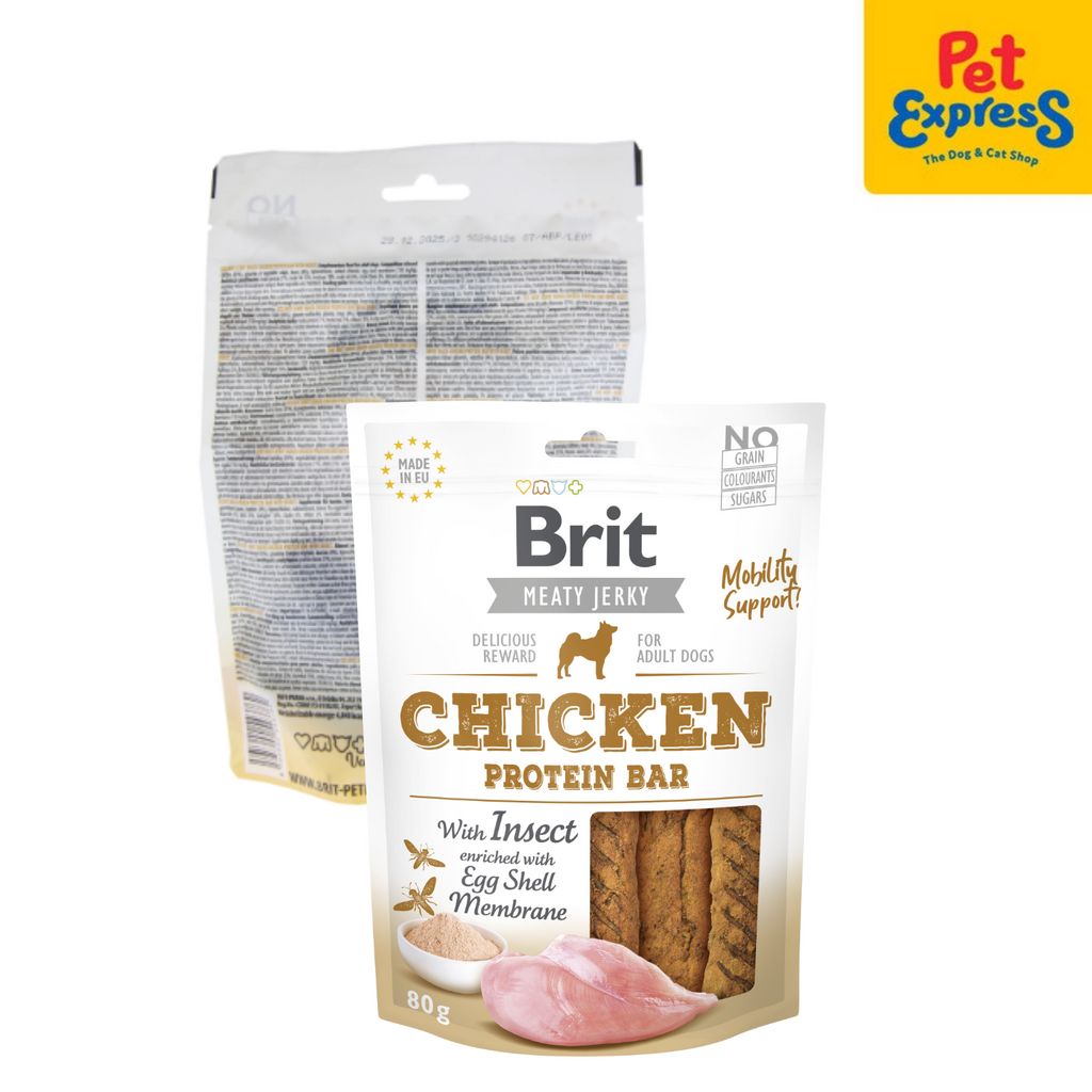 Brit Meat Jerky Snack – Protein bar with Insect. Brit Jerky Snack – Protein bar with Insect. Complementary food for adult dogs. 85% real chicken and insect – good source of high-quality protein. Enriched with eggshell membrane for mobility support. Superior flavor. Natural antioxidants: rosemary extract. No Grains – No Colorants – No Sugar – No GMO. Made in the European Union ? I want to know more about the initiative European Union made snacks.