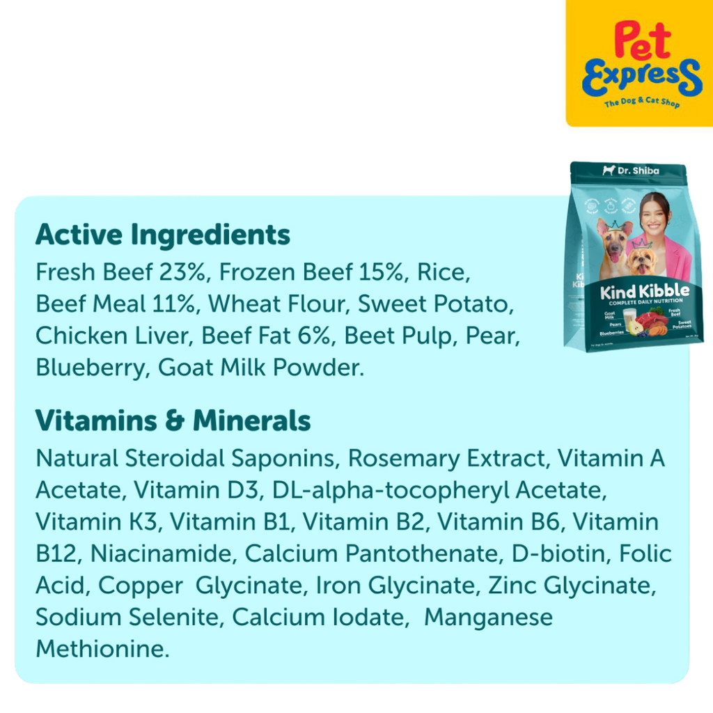 Dr. Shiba's Kind Kibble redefines dog kibble with high-quality beef protein and nutrient-rich superfoods. It provides a balanced, digestible diet that supports muscle growth, energy, and overall health - without-hard-to-digest ingredients.