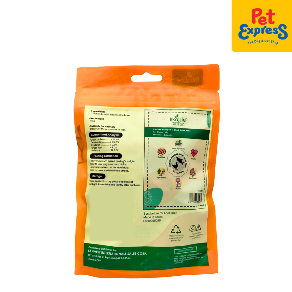 This tasty, wholesome treat is made from real chicken breast and shark spine bone which your dog will surely love. Great for daily rewards, training sessions, or just sharing a moment with your pet.