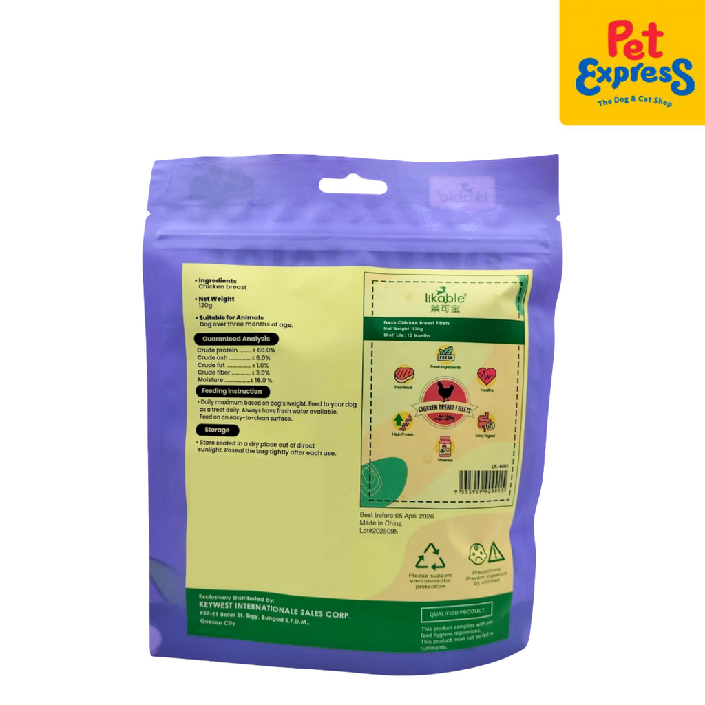 Likable Original Prime Fresh Chicken Breast Fillets Dog Treats 120g