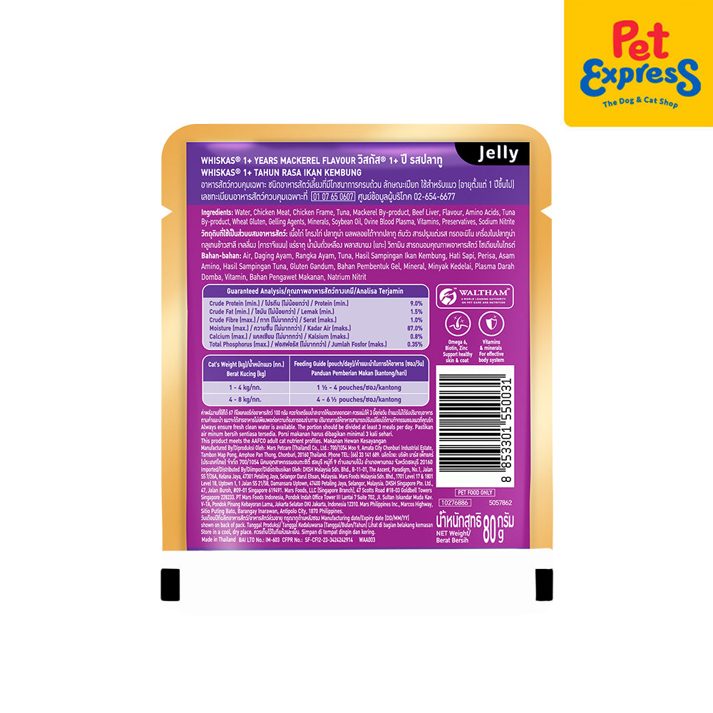 Whiskas Adult Mackerel Wet Cat Food 80g (14 pouches)