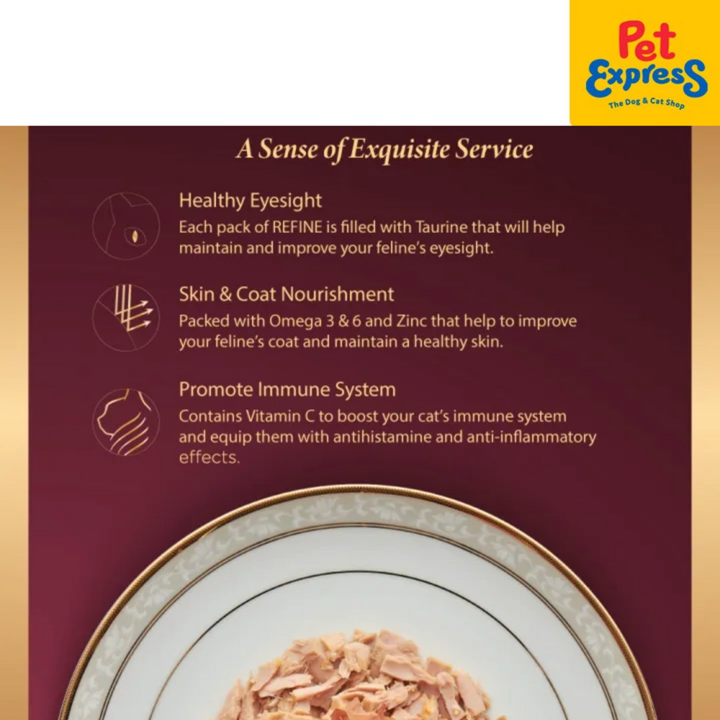SmartHeart REFINE is an extraordinary array of selected premium white meat tuna prepared in delicacy gourmet recipes of high nutrition and quality to reward every cat with loving affection. It is absolute Fine Dining for even the most demanding cat