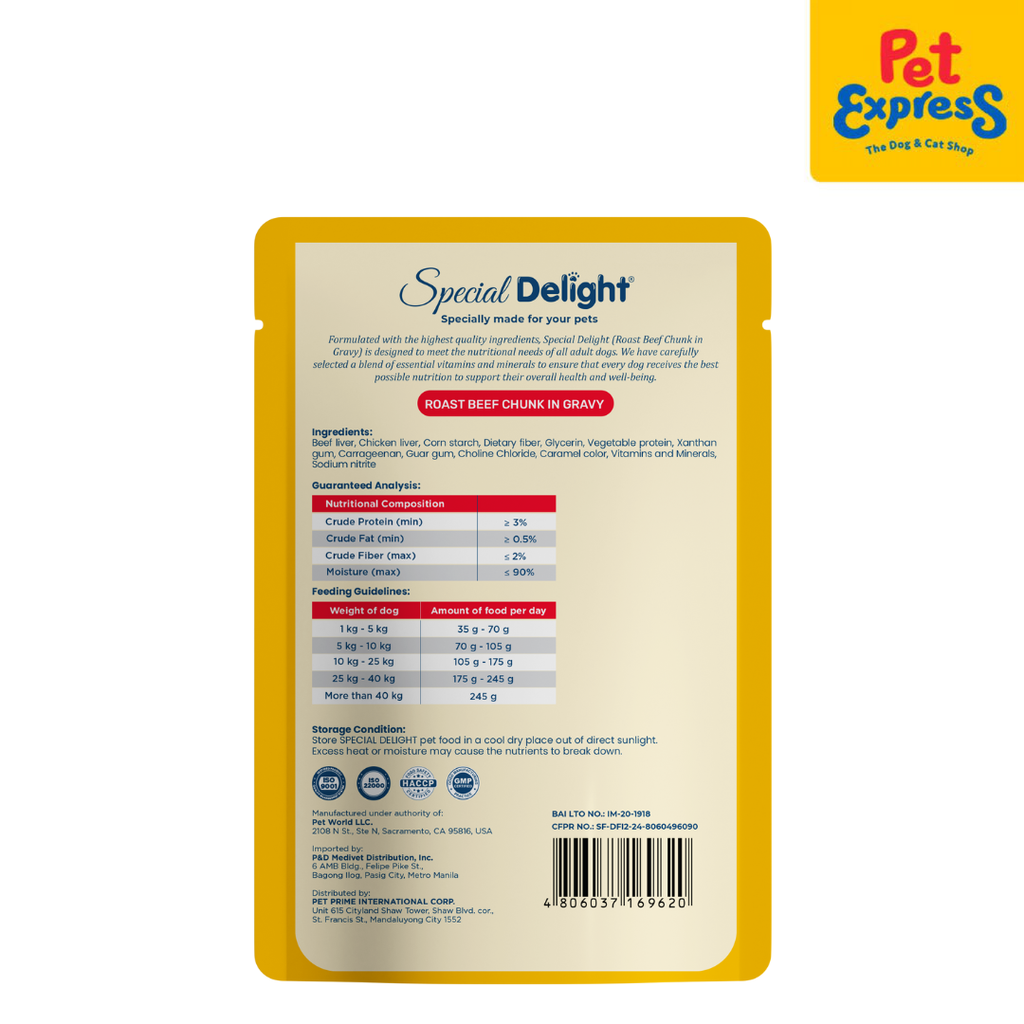 Special Delight Adult Roast Beef Chunk in Gravy Wet Dog Food 130g (10 pouches)